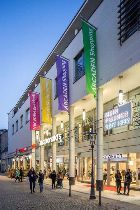 ALDI, dm, Modehaus Fischer, Deichmann, Olymp & Hades, Tedi (as of 2026), pharmacy, C&A and H&M (on neighboring properties connected to the centre)